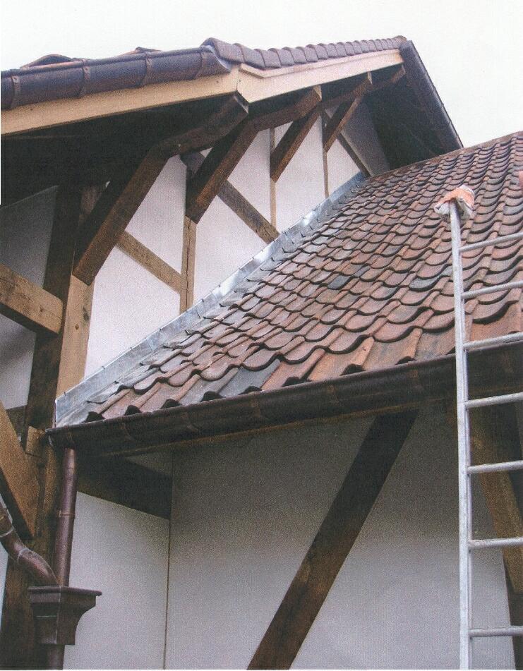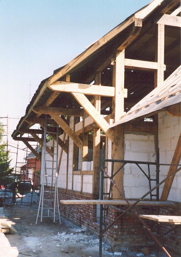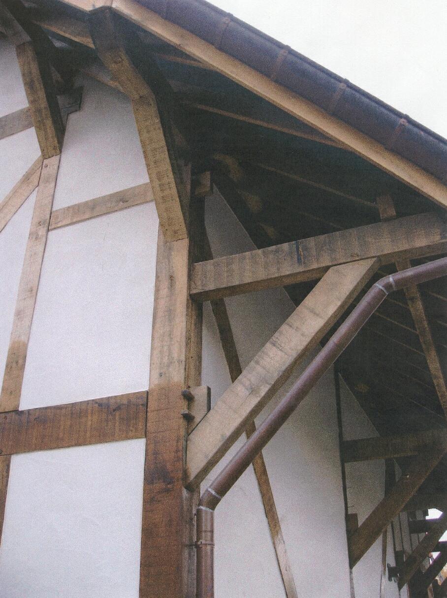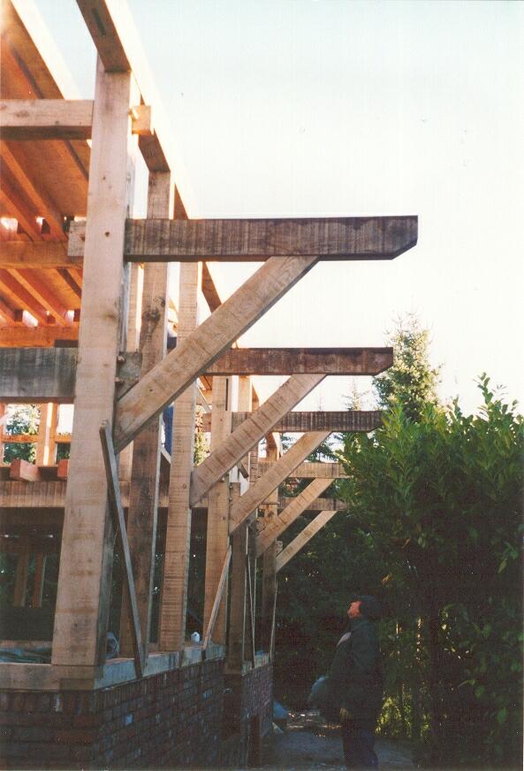 Het dak wordt ondersteund door oversteken:
