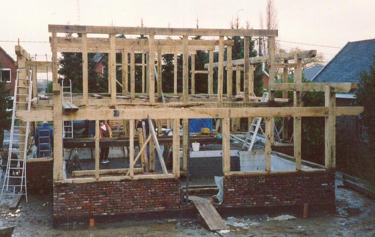 De eerste stap in het effectieve bouwproces was een basisstructuur steunend op de funderingen en een gemetste onderbouw